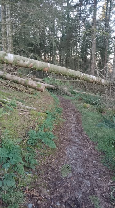 There are also some smaller broadleaf now down across the path in the felled area and at Cardoon Bridge.